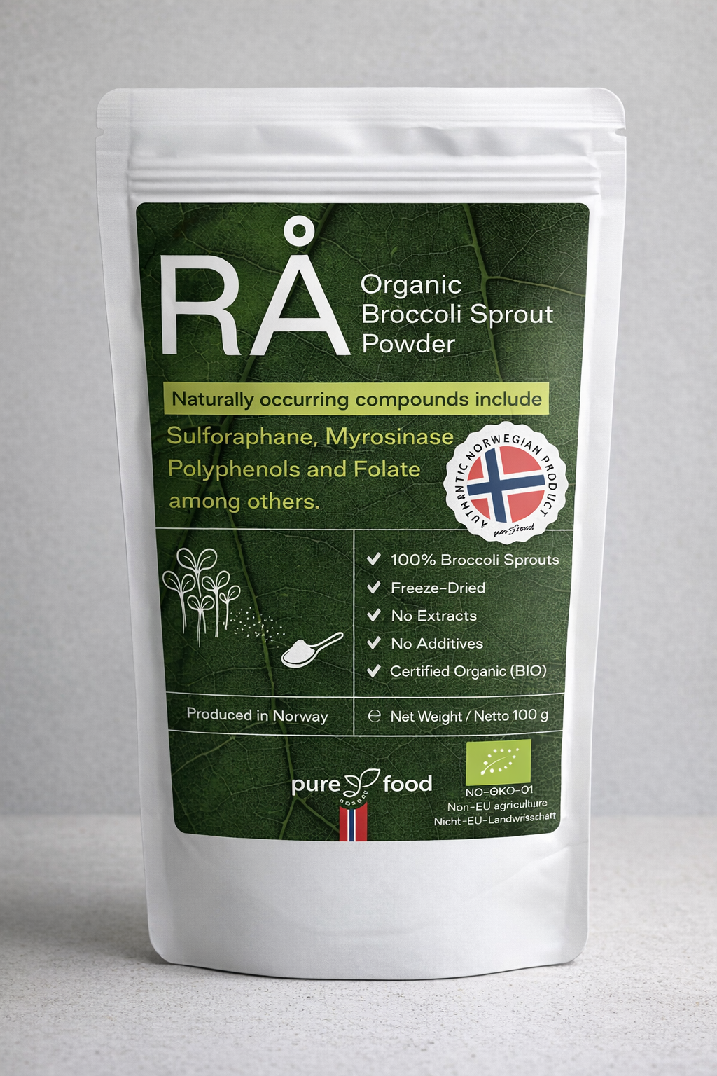 Veškerá produkce probíhá v Norsku – od semínka až po finální kapsli. Spolupracujeme s firmou Norske Spirer, zkušenými pěstiteli brokolice, kteří se klíčením zabývají desítky let. Celý proces probíhá v kontrolovaných podmínkách na jednom místě. Výsledný produkt – sušené brokolicové klíčky ve formě prášku – si uchovává nutriční stabilitu a je ideální pro každodenní užívání.